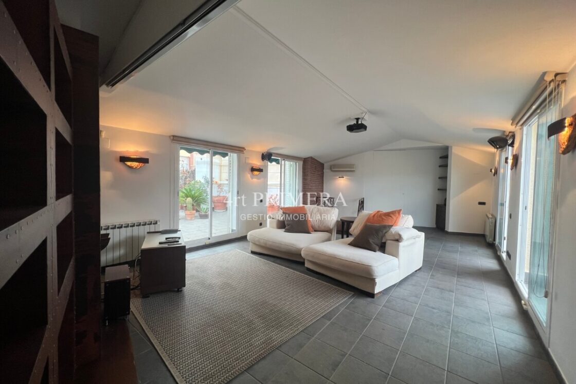 Aquest dúplex de 174 m² construïts ofereix una distribució pensada per al confort i la vida en família. Gràcies a la seva orientació i disseny, gaudiràs d’estances lluminoses, espais ben aprofitats i racons únics com el seu saló amb projector de cinema o les seves dues terrasses privades.